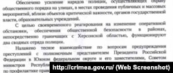 З метою своєчасного реагування на зміну оперативної обстановки, забезпечення громадської безпеки в районах, що безпосередньо межують із Херсонською областю, функціонують два зведені загони поліції», – йдеться у документі глави російського МВС Криму.
