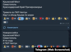 «Нептуни», намагаються облетіти півострів та атакувати Краснодарський край!». Цілі по території Криму над морем. «Нептуни» пройшли Алушту!». «Тривога з ПРК «Нептун». По ходу 4 «Нептуни»», – у перші дні травня практично щодня кримські пабліки попереджають кримчан про ймовірні атаки українськими ракетами «Нептун».